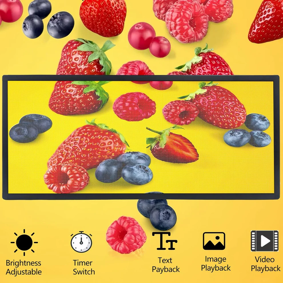 - Unleashing Visual Brilliance: The vibrant RGB color P3 programmable LED sign can quickly attract attention, with a maximum brightness of 5000cd. The adjustable-brightness LED display can achieve optimal viewing effects under different lighting conditions. It has a resolution of 320×128 and can present clear, flicker-free text, images and videos
