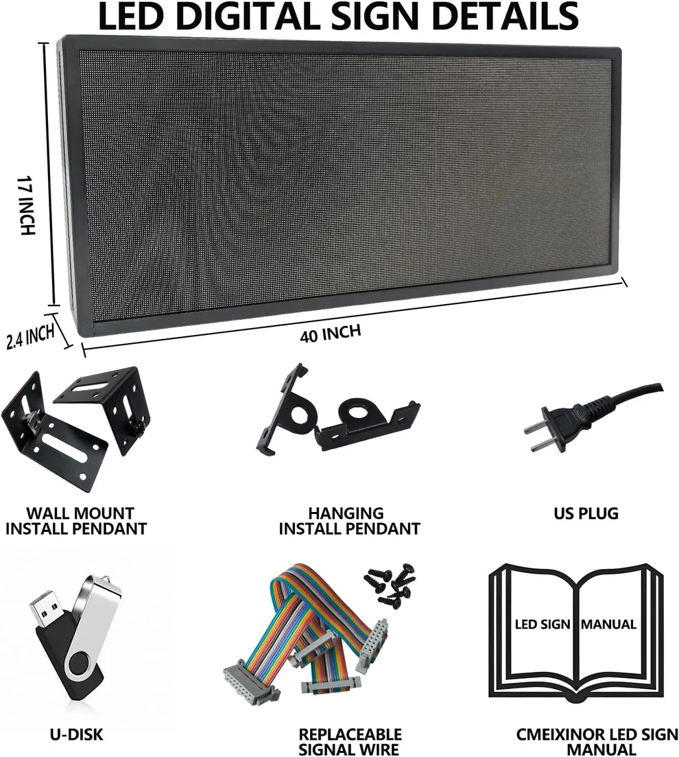 - Smart Living: Download the programming software to your phone or computer and connect to the LED scrolling sign’s built-in Wi-Fi. Update mall promotional information quickly and accurately to stay ahead. Say goodbye to messy wires and on – site work. It also features a memory function, keeping the last – shown content even after a power cut